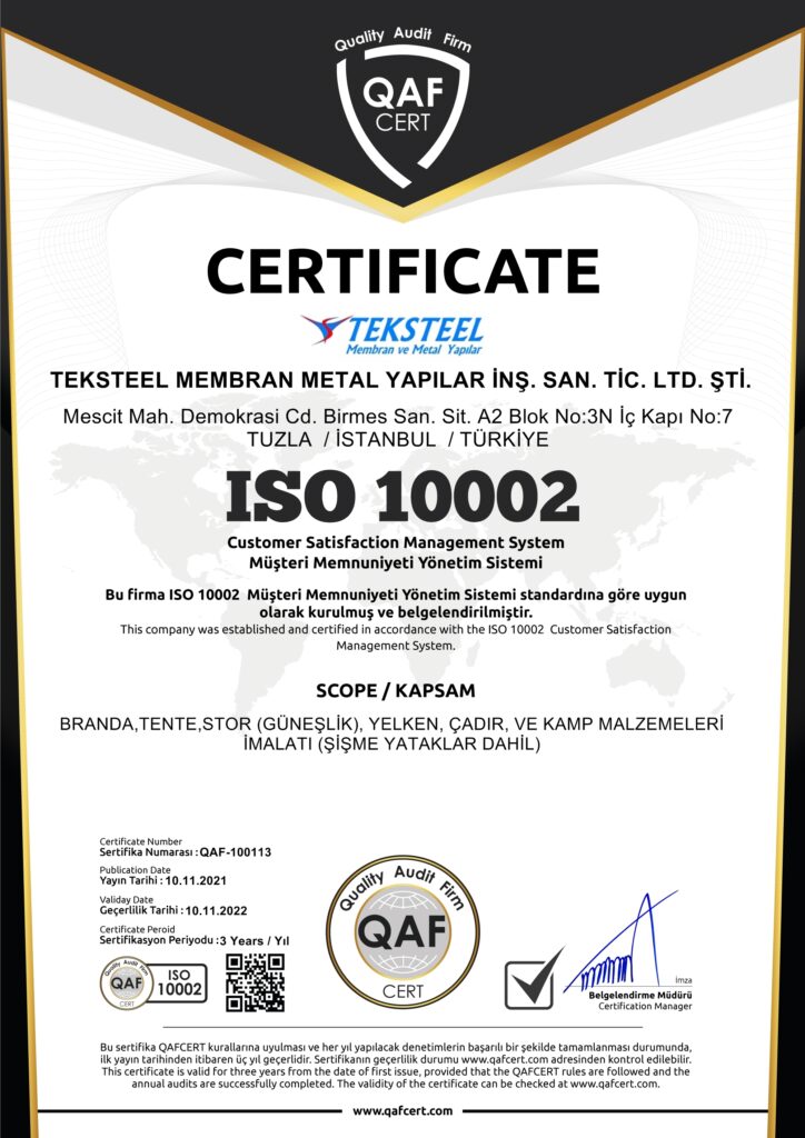 Profesyonel yaklaşımı ile taleplerimizi karşılayan ve fiyatları ile bizi memnun eden Teksteel’i tavsiye ediyoruz.